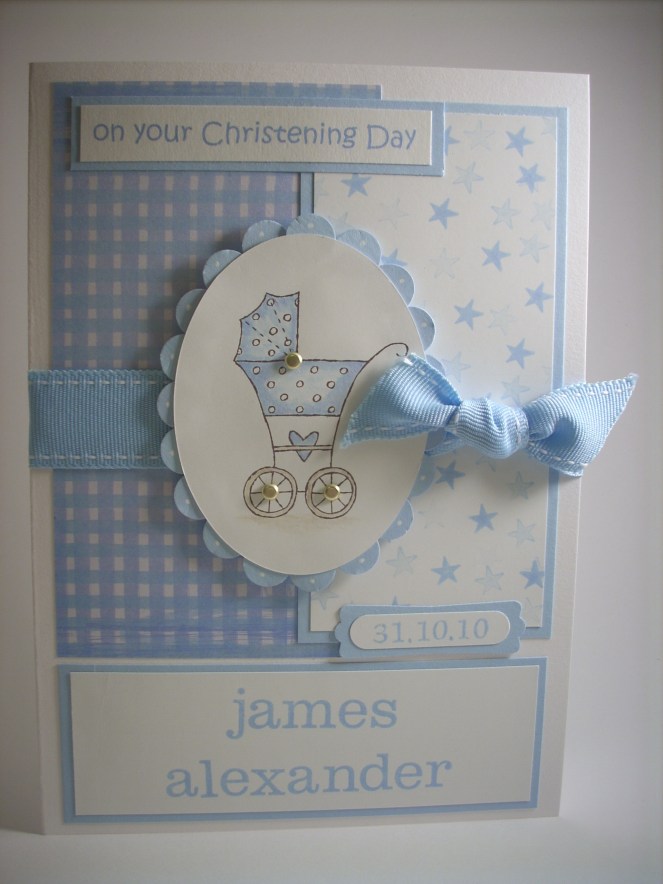 My friend, Clare, asked me to make a personalised Christening card for baby James, who is being Christened on Sunday. This is what I came up with…