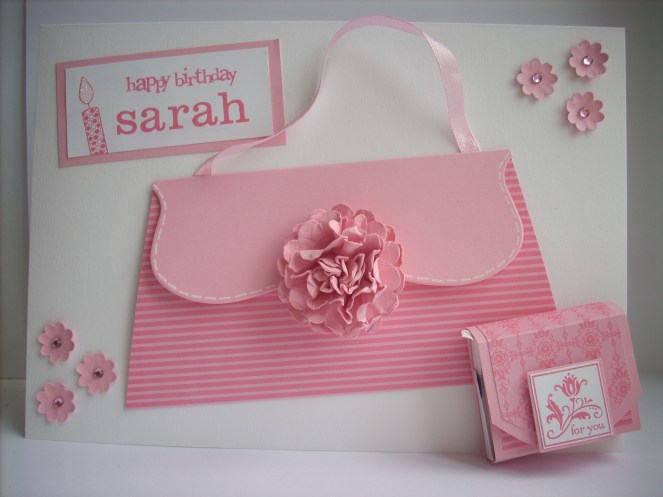 She is a really girlie girl and just loves the colour pink, handbags and chocolate! So this is what I came up with …