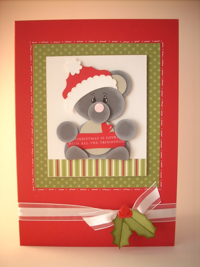 I followed the instructions for making the mouse which I found on Kim Score’s blog (yes, it is a mouse and not a bear like my husband thought! Maybe because he’s missing a tail?) This lady is so talented – I just love her work! I also followed the instructions for making the holly on Michelle Last’s blog. Thank you Michelle! Love it!
