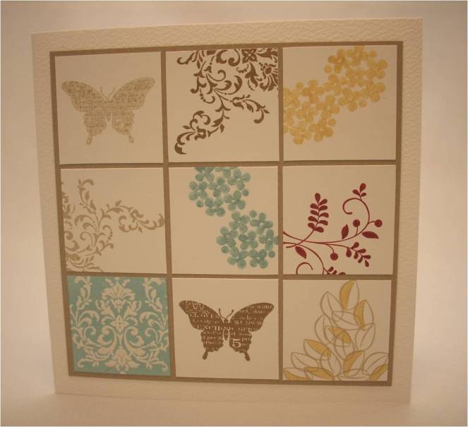 I love it! The colours go so well with my lounge – just perfect! And it meant so much receiving such a wonderful gift which she’d stitched with love. It inspired me to make this card to send her as a thank you: