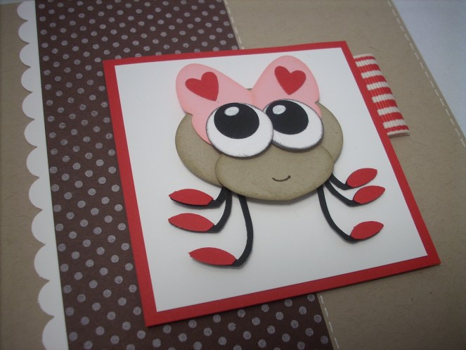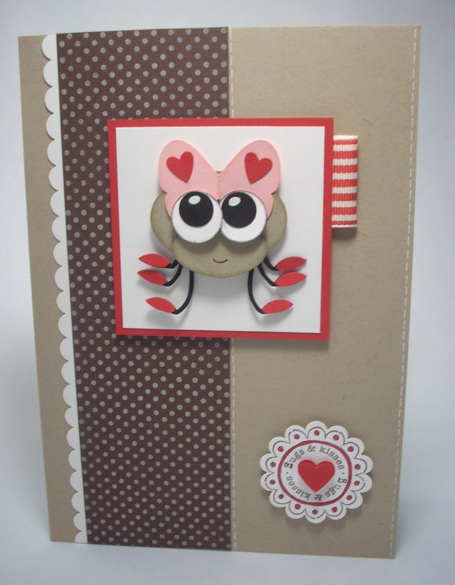 I couldn’t resist changing the words on the stamp at the bottom with a chocolate chip stampin’ write marker from “hugs and kisses” to “Bugs and kisses”! I had so much fun making this… I love it… and I hope he does too!