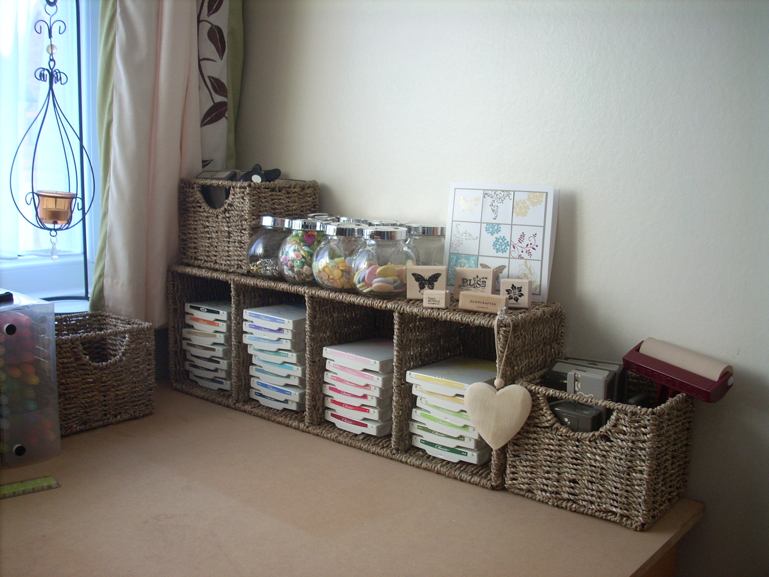 The lighting is better on this close up, and shows off my new ink storage better. It’s really a CD rack on its side …
