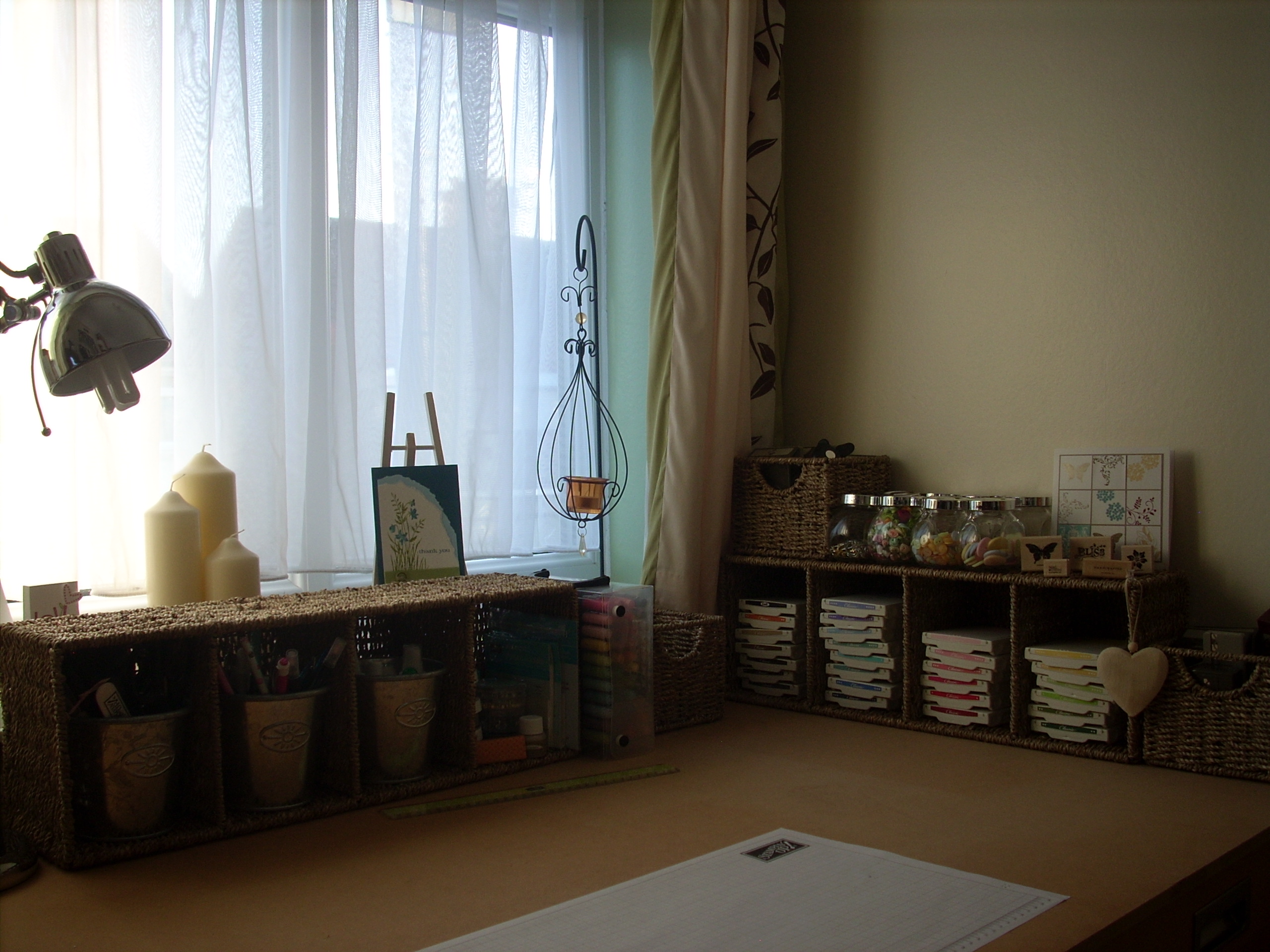 I’ve not been able to craft for a while as I’ve been poorly. I’m now getting back on my feet and hoping to get back to crafting at long last. So for now, here’s a little look at my craft space… at least part of my desk … oh, and one of its little visitors …