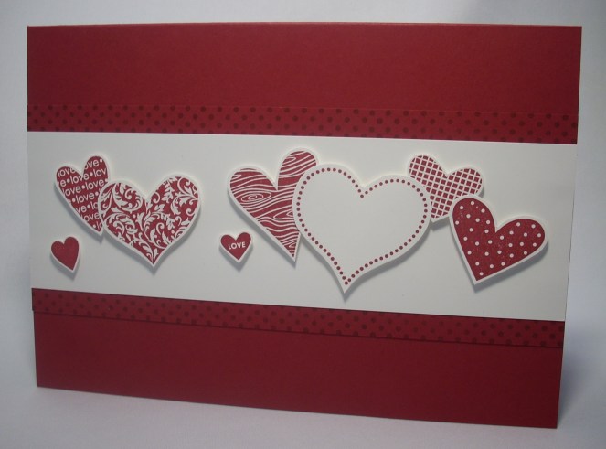 Cardstock: whisper white, cherry cobbler; Ink: cherry cobbler; Stamp sets: I heart hearts, dot dot dot; Accessories: stampamajig, stampin’ dimensionals.