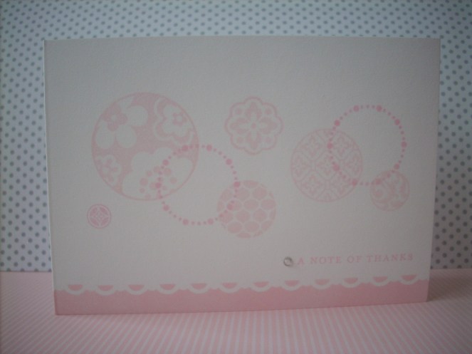 Cardstock: whisper white; Inks: pink pirouette, pretty in pink; Punch: scallop trim border; Stamp sets: circle circus, thank you kindly; Accessories: sponge dauber, basic rhinestones.