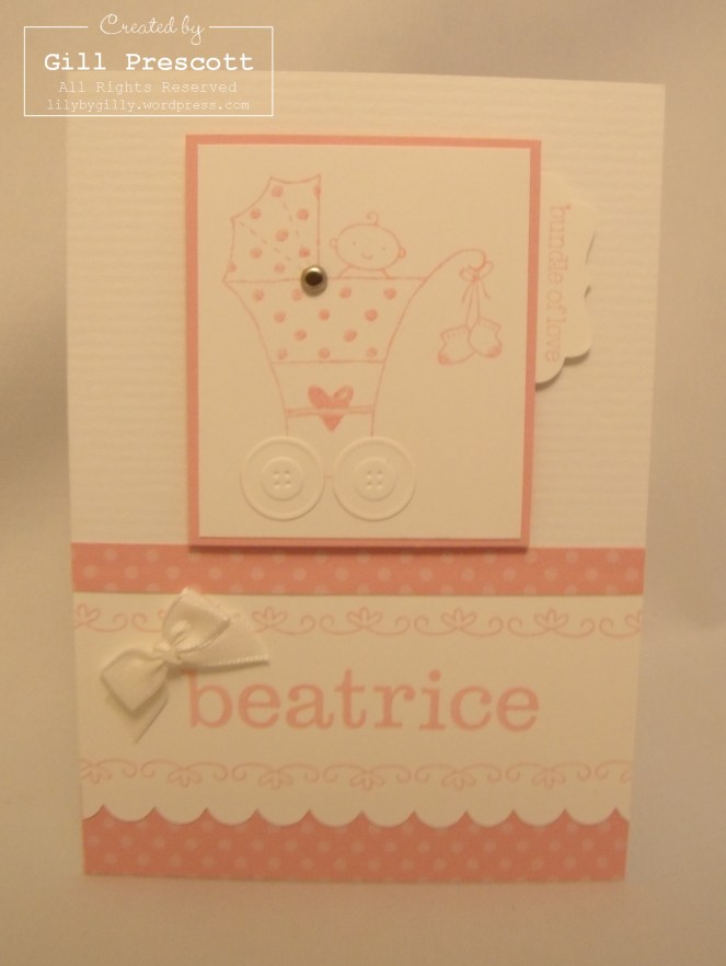 Now for something I feel a little more comfortable with … my friend, Ana, asked me to make a new baby card for her friends in Italy. I used my favourite baby stamp set from Stampin’ Up! called Bundle of Love…