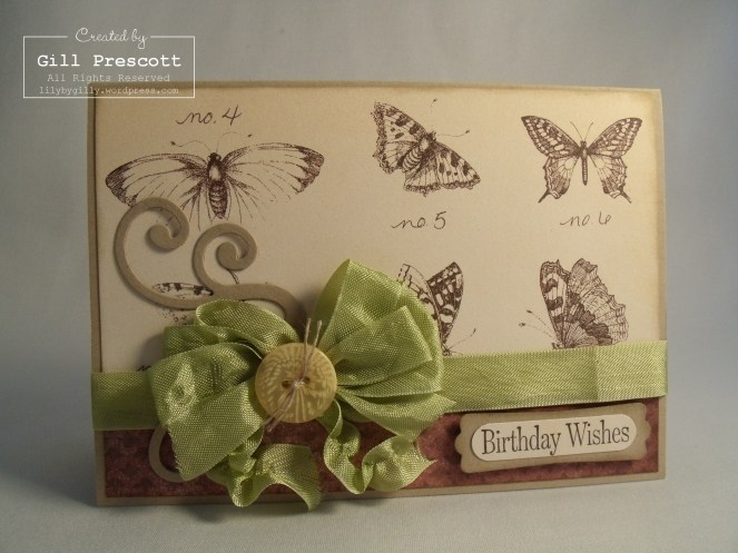 This card is just perfect! Beautiful green bow and my favourite dsp – what more could a girl ask for? Oh yeh – cake!!! and that was delicious too !!! Thanks again Gill for a fabulous day xxx