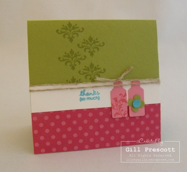 I cased this card from the ideas book and catalogue from Stampin Up, which is full of great ideas and card examples – and it is such great value and around the same price as a craft magazine, but with nearly 200 hundred different projects in – wow!