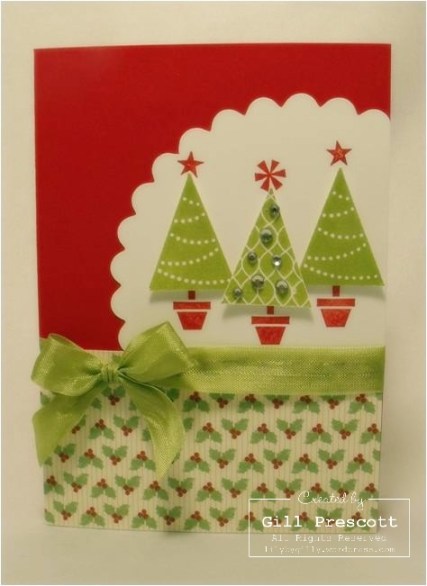 I added a piece of Holly Berry Bouquet designer series paper, some vintage ribbon and just a few rhinestones for some added bling.