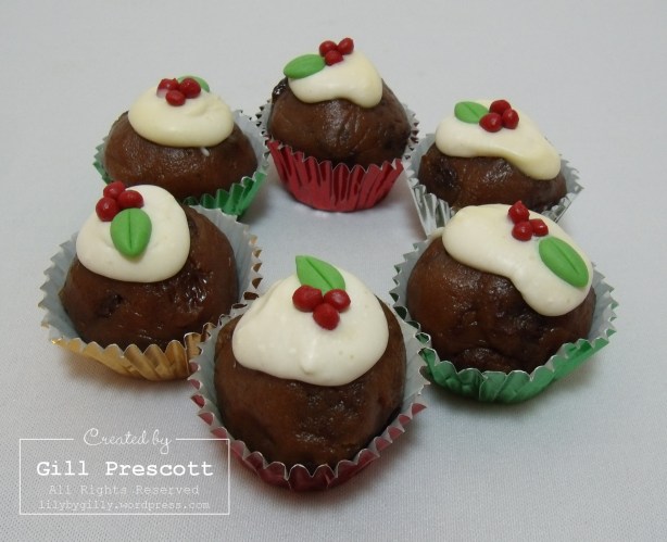 Each pudding holds a chocolate treat, and would be ideal for party favours or table decorations, and could even include a name on the holly leaf so they could be used as place settings too…