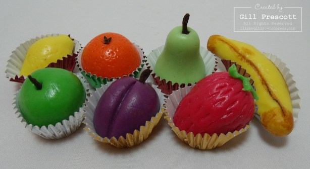 With Christmas only around the corner, we made small treats instead of a cake … marzipan fruits…