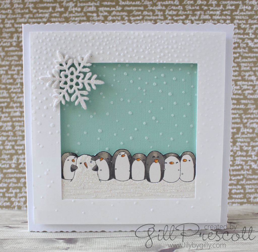 welcome back! this card reminds me of Where’s Waldo., Can you find the snowman amongst all the penguins? lol love how you set up the card.