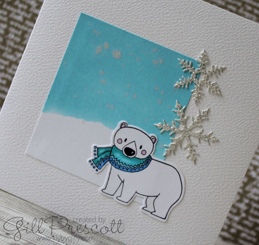 I used the folk Christmas stamp and diet set by Sizzix to stamp this cute little polar bear …