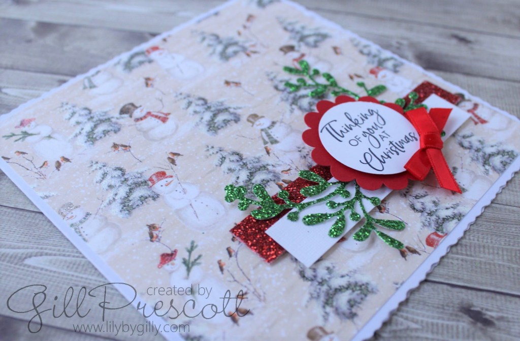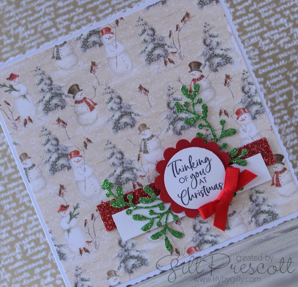 I started with this pretty paper as the snowmen are either wearing red or green hats – how cute!