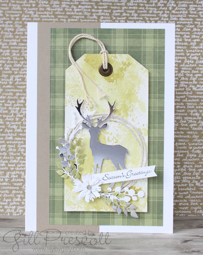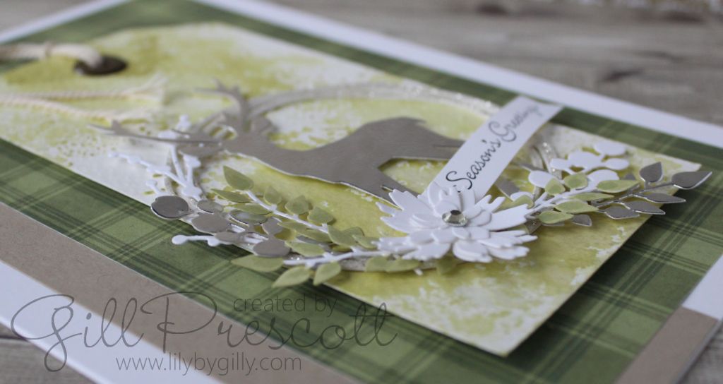 This is so pretty Gill! The ink smooshing looks like dappled sunlight in a forest glade, behind your stag. And the wreath and foliage is beautifully delicate. Gorgeous card.