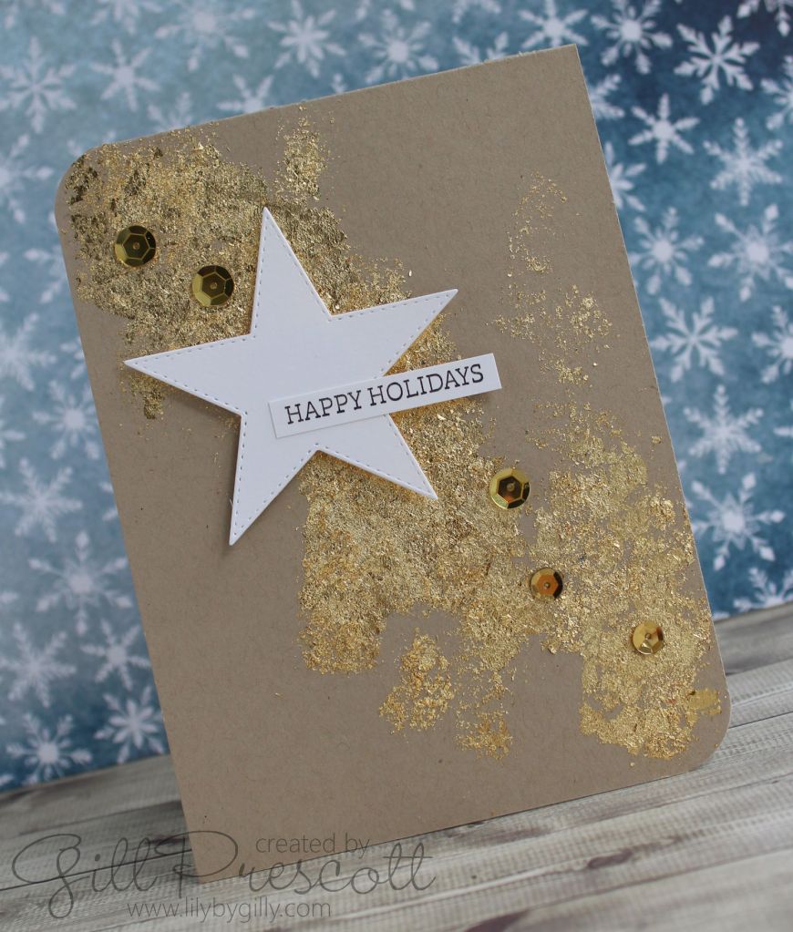 The focal image is a stitched star die cut, popped up on foam squares. I added a simple greeting and some gold sequins.