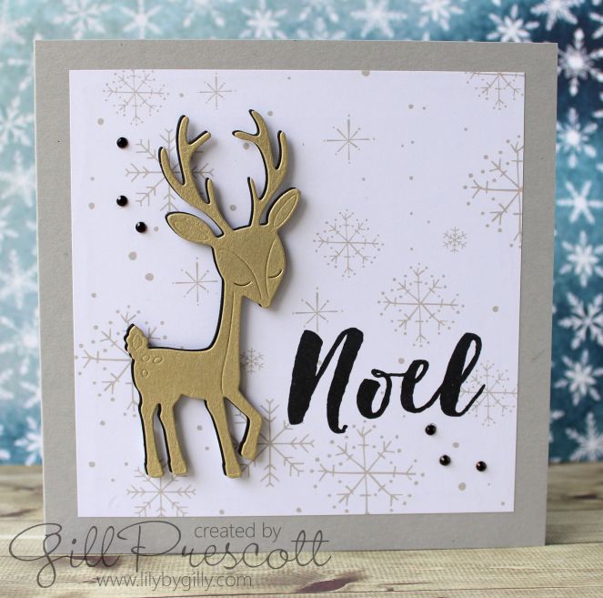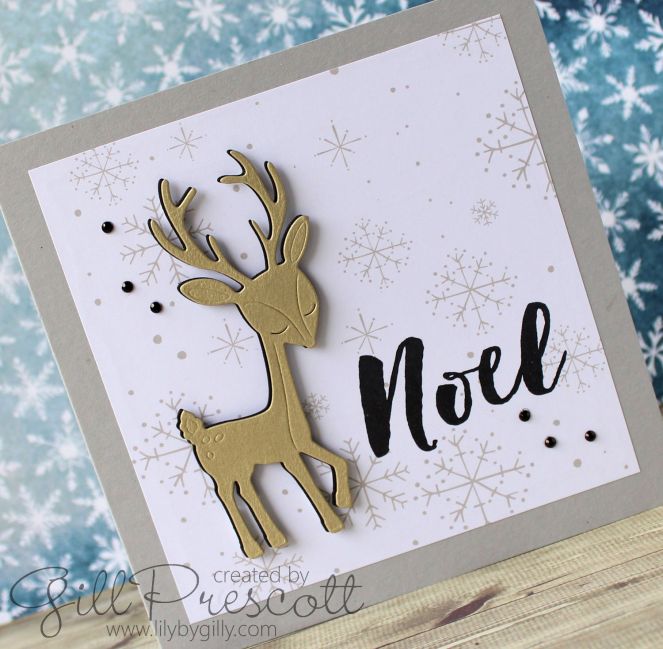 The colour challenge at 52 Christmas Card Throwdown this month is to use grey, gold and black – rather an unusual combination, and not one I would have thought of myself to use, but I love how my card turned out…