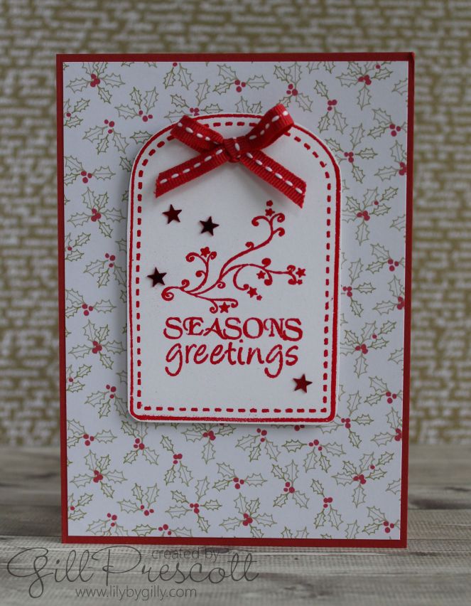 The challenge at 52 Christmas Card Throwdown today is a tic-tac-toe, where you can choose a combination of things to include on your card. I chose a tag, embossing and stitching…
