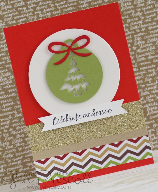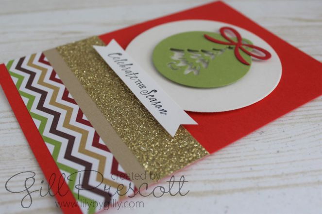The colour challenge at 52 Christmas Card Throwdown this week is to use red, green and brown. I decided to also challenge myself to use up some of my scraps and spare die cuts, and see what I could come up with. I auditioned various items until I was happy with the look …