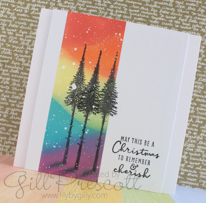 The technique challenge at 52 Christmas Card Throwdown this week calls for distress inks or ink blending. I used distress oxide inks in rainbow colours for my card…
