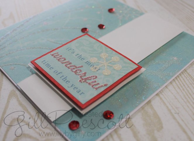 I love the sparkly background paper and love how the red looks with it too. So, no stamping this week – I let this gorgeous dsp take centre stage.