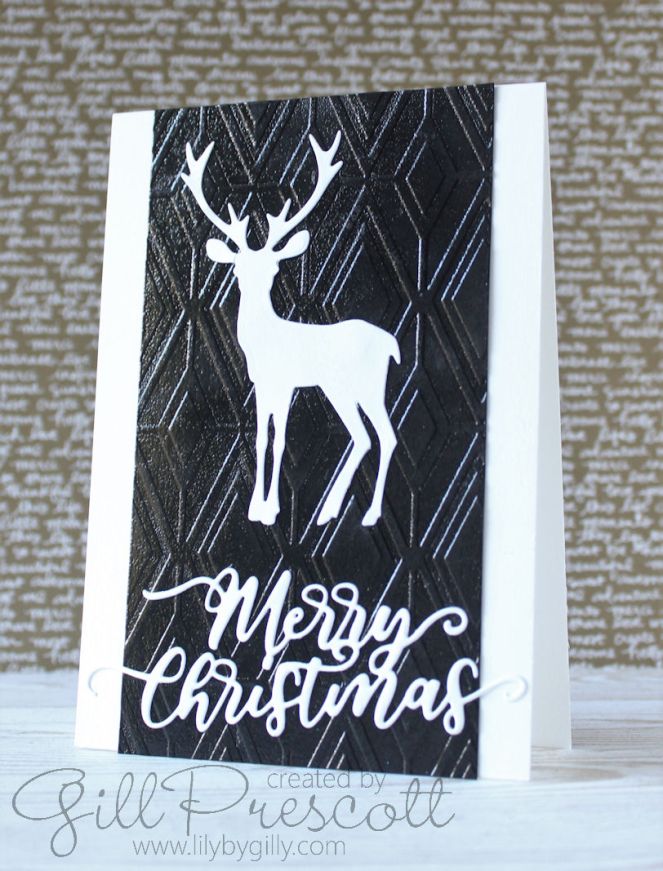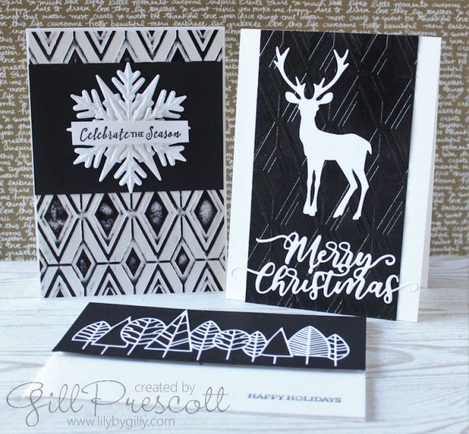 Hello and welcome. The colour challenge at 52 Christmas Card Throwdown this week took me totally out of my comfort zone as it challenges us to use just black and white and no other colour. These are not my go to colours for any cards, let alone for Christmas. However, once I got into my stride, I found it a little hard to stop and ended up making not one but 3 cards – all quite different and using some techniques I’ve not tried before…