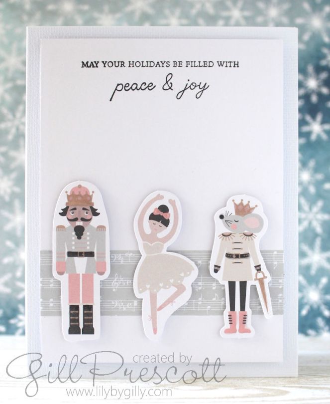 The kit also included the card base and so many pretty papers it was hard to choose, but in the end I chose this lovely music pattern which I thought went well with the three Nutcracker images, which were popped up on foam tape.