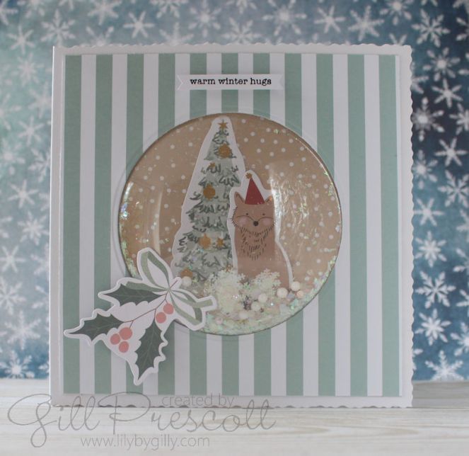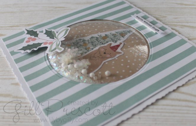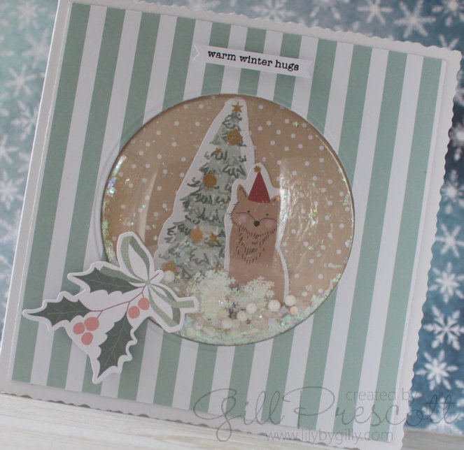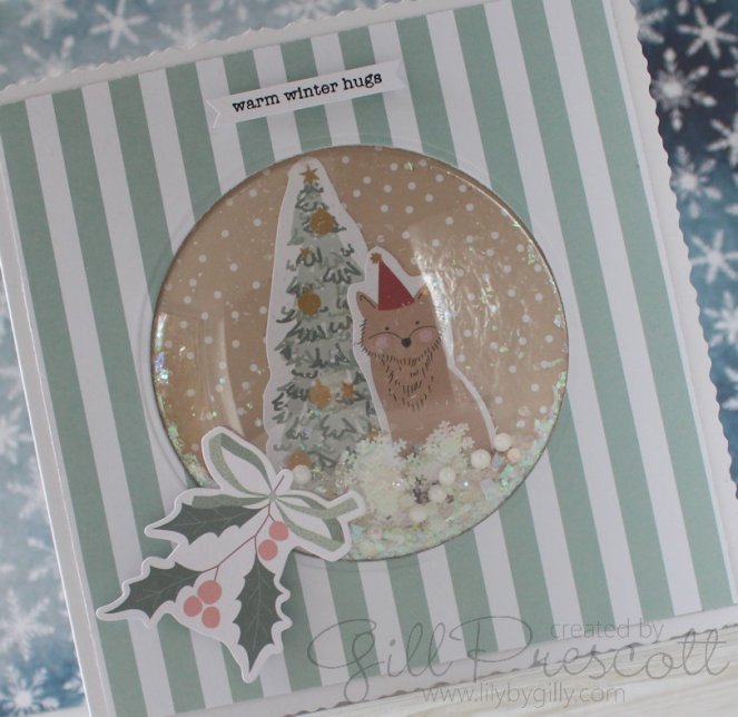 I used a Sizzix window pane for the shaker itself, and filled it with snowflake sequins, small snowballs, shaved ice fragments and some clear seed beads as I love the sound they make when you shake the card.