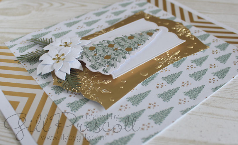 I added die cut poinsettias by Marianne Designs. The foliage is also cut using dies from the Joyful Christmas kit.