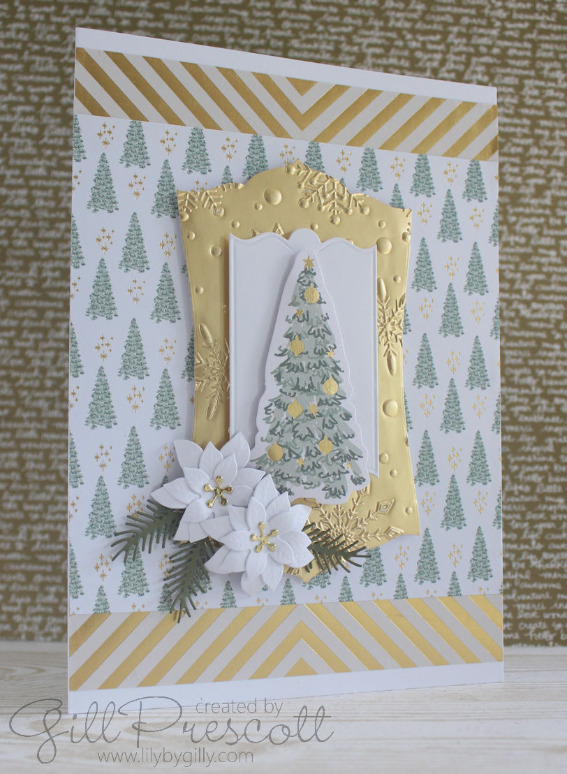 The centre gold panel was diecut using the Noel Mini Slimline Frame set, which I embossed using the Flurry of Snowflakes embossing folder, also by Spellbinders.
