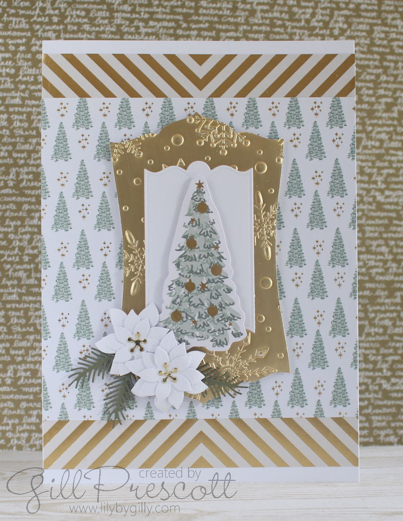 My card for this week’s challenge at 52 Christmas Card Throwdown, uses pretty papers and die cuts – no stamping required…