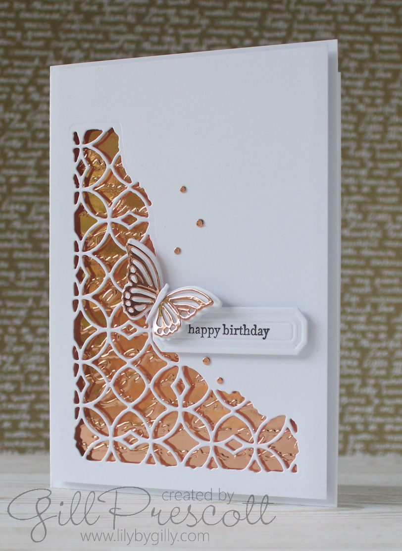 I love the rose gold cardstock, and the pretty die cuts.