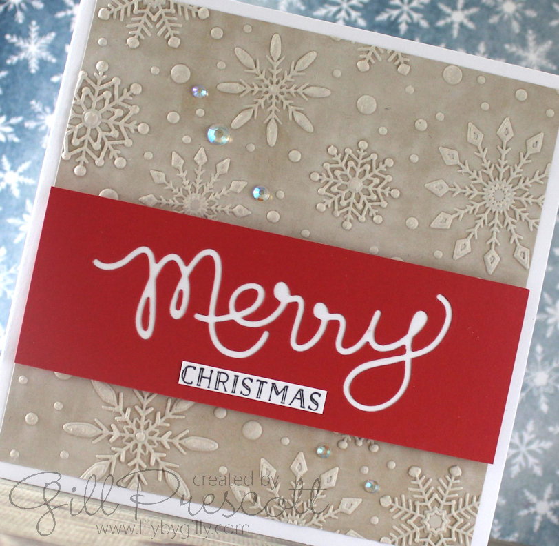 Your snowflake embossed background is so pretty in the crumb cake with the top inked with white – and I love the red strip for the sentiment! Julia xx