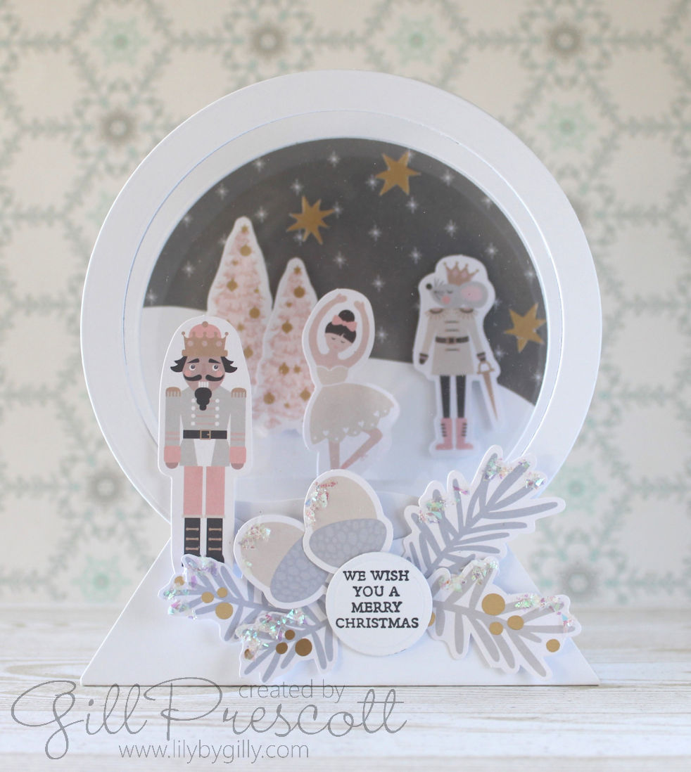 There’s nothing more delightful than spending some time crafting your own Christmas cards. For this week’s challenge at 52 Christmas Card Throwdown, I followed an easy and fun tutorial by Sarah Trebilcock to make this fun 3D snowglobe card with a Nutcracker theme that only requires a few basic tools—circle dies, a scoreboard, and scissors. Even with such minimal tools, the results are stunning! To give my card a little extra sparkle, I added embellishments from the Spellbinders Joyful Christmas card kit and, of course, a touch of glitter for that festive magic. Amazingly, this dimensional card folds flat for posting!