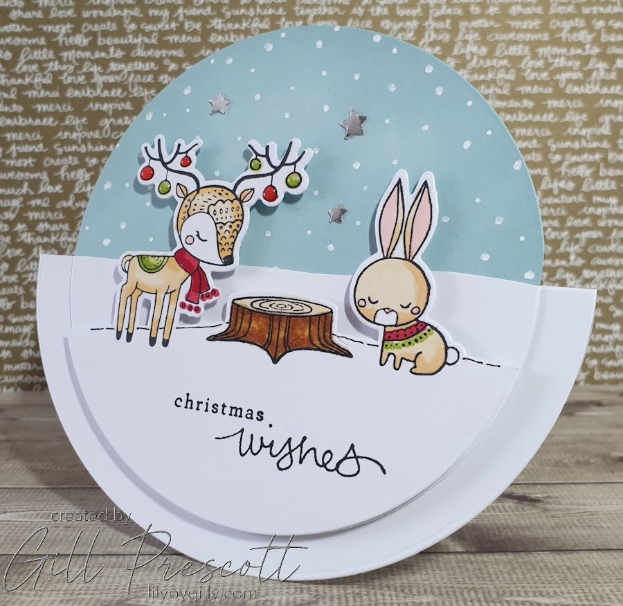 This week’s theme challenge at 52 Christmas Card Throwdown is all about critters, so I couldn’t resist making a fun rocker card featuring some adorable woodland animals!