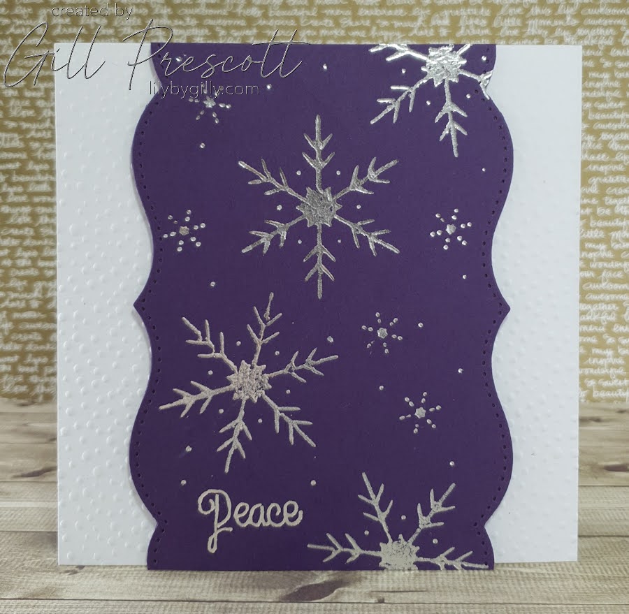 The silver snowflakes really catch the light against the Elegant Eggplant background, and I love the combination of foil sparkle with the soft embossed snow underneath.