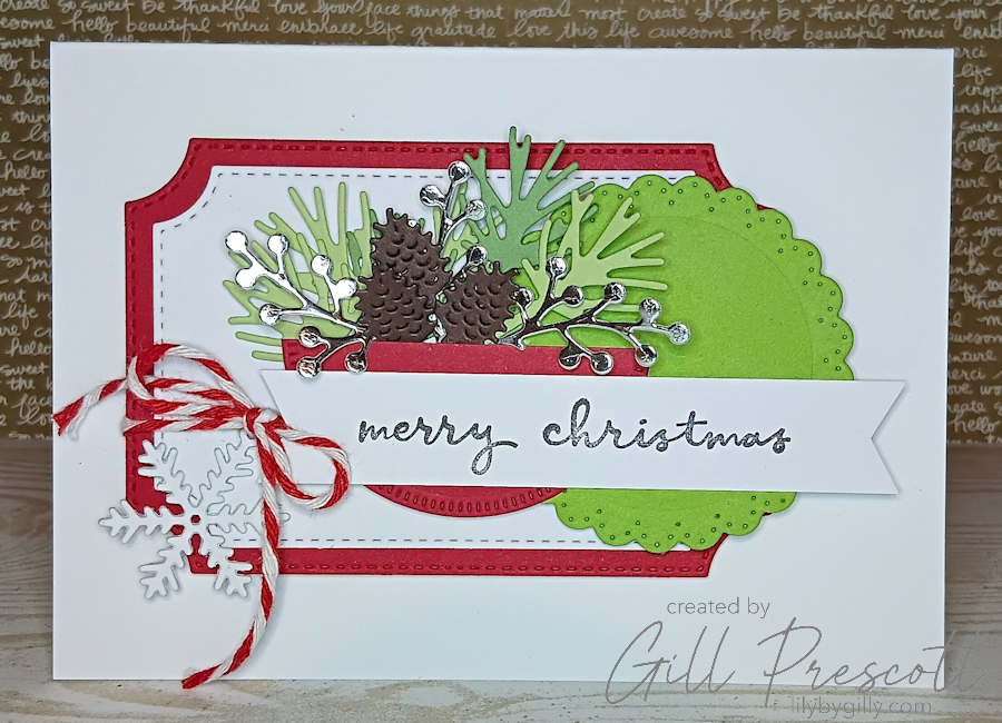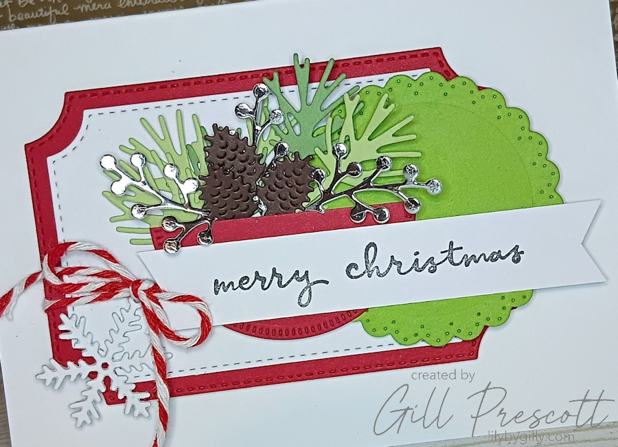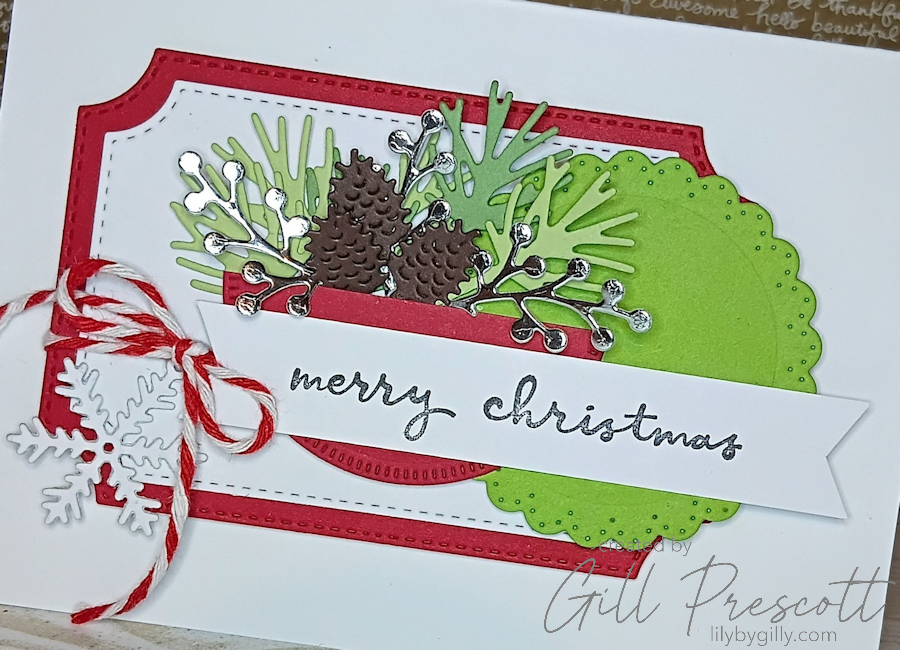 For the festive foliage, I went back to the Branching Out die set, die cutting leaves in two shades of green, with silver springs and pine cones in Chocolate Chip. I love how these colours work together for a classic Christmas feel.