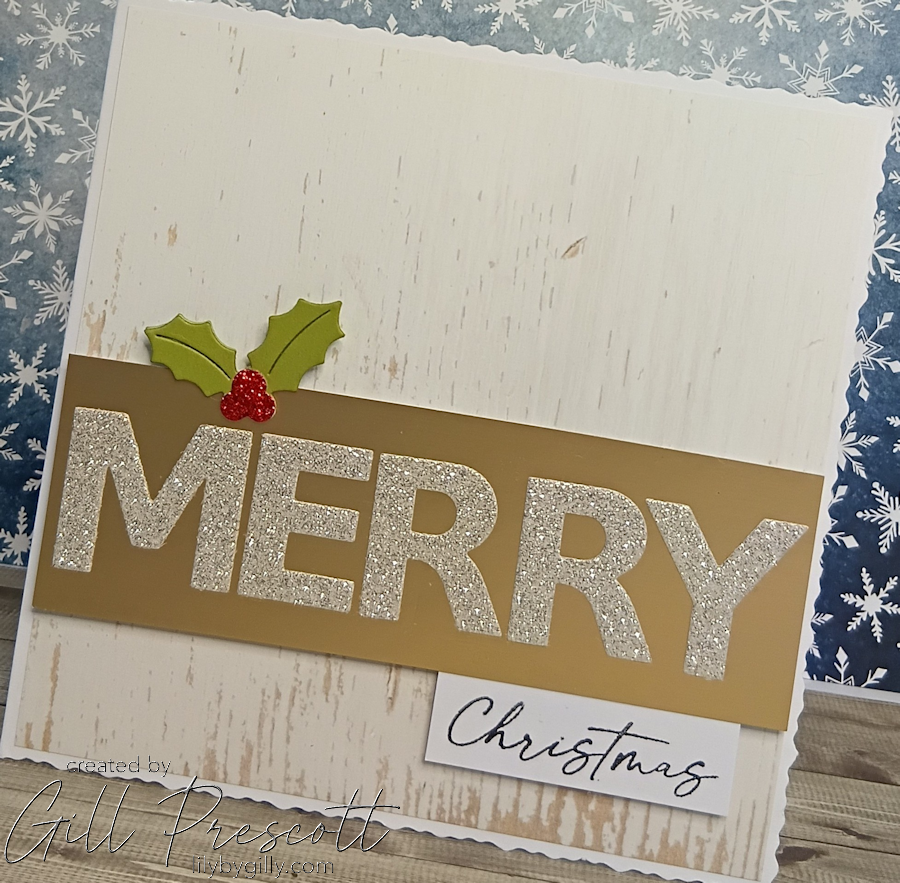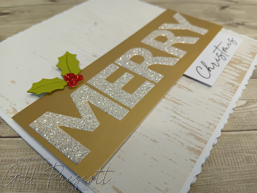 Once in place, the full sentiment now reads “Merry Christmas”, tying the whole design together perfectly.