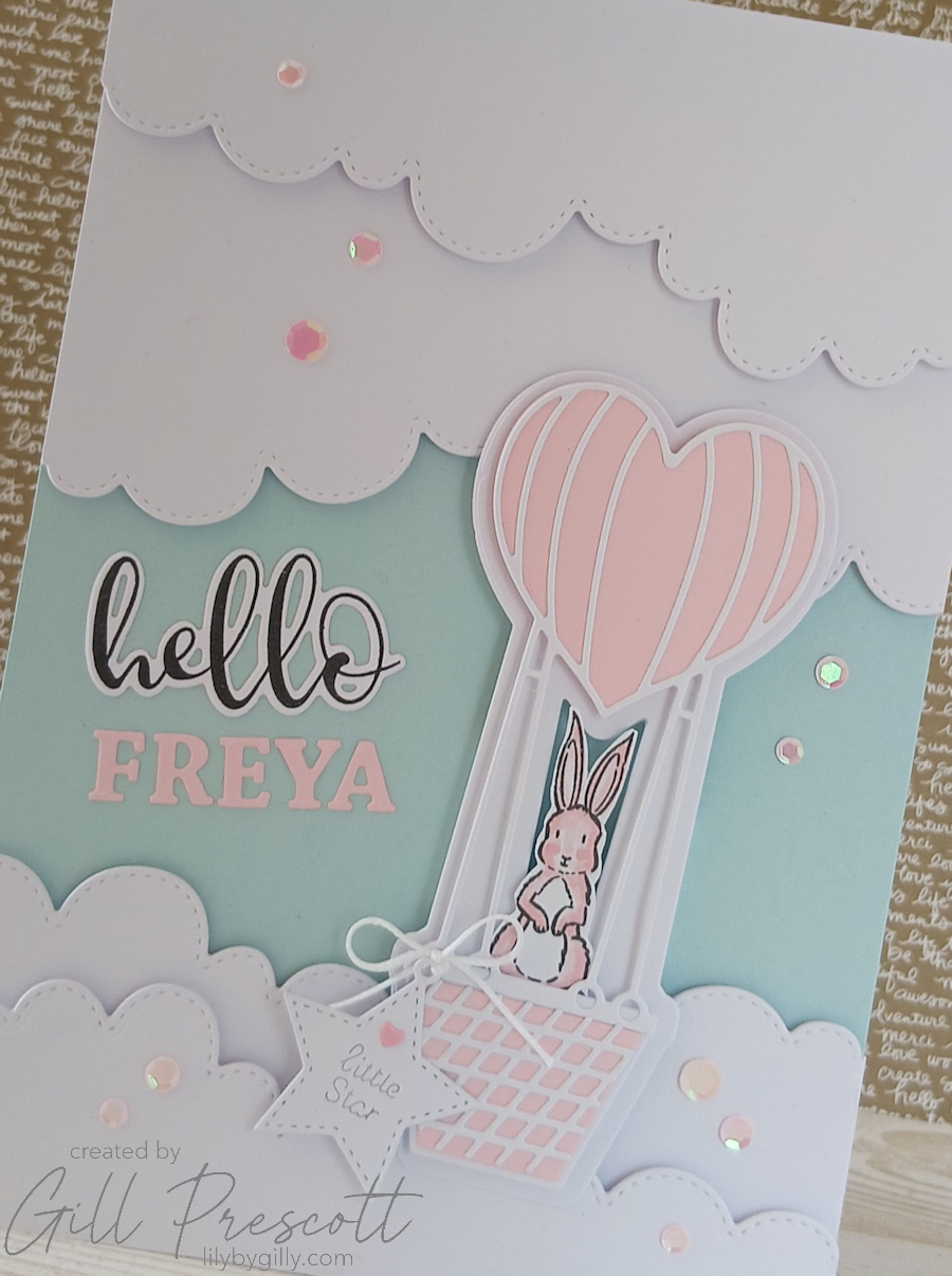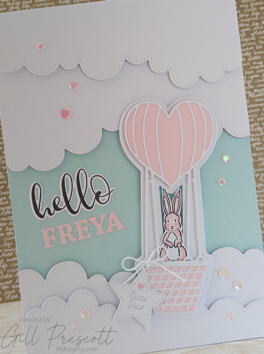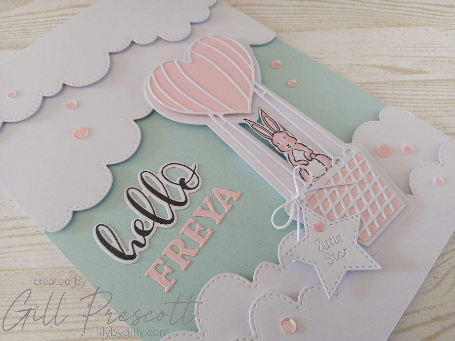 After making a baby boy version for a recent colour challenge, I couldn’t resist creating a baby girl card in a similar style for a dear friend who has just become a grandmother to a beautiful little girl, Freya. It felt especially meaningful to make, knowing just how much this little one has been hoped for and longed for. Soft skies, fluffy clouds and the sweetest little balloon scene… it’s one of those designs that just feels gentle and joyful from start to finish.